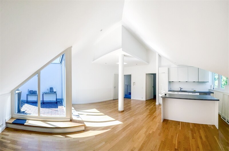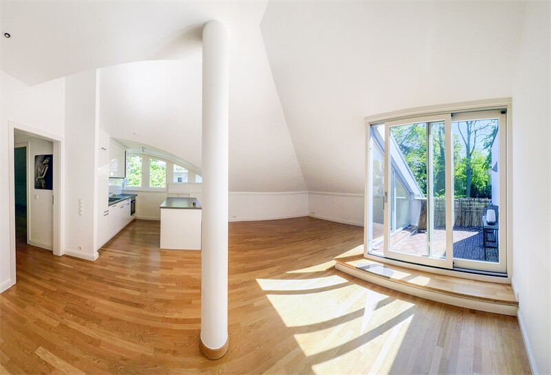 Es handelt sich um eine exklusive Dachgeschoss-Wohnung mit ca. 70 qm erstklassiger Wohnfläche in moderner Architektenvilla aus dem Jahre 1995.