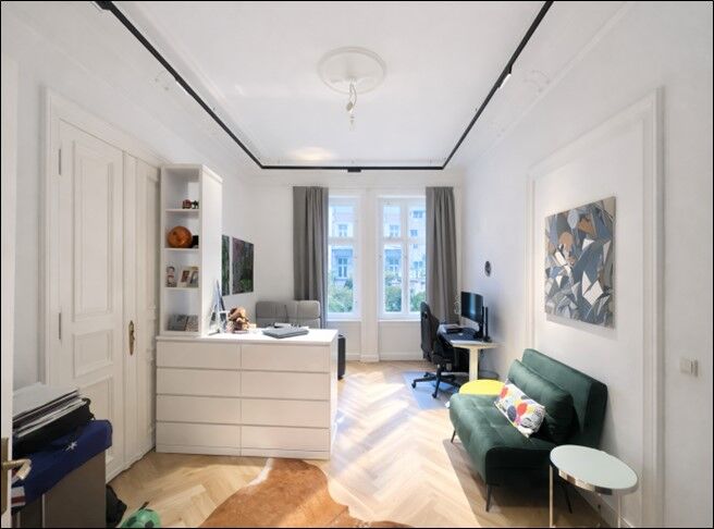 Es handelt sich um eine exklusive Designer-Altbau-Wohnung mit ca. 123 qm moderner Wohnfläche mit 3.4 Meter-Deckenhöhe im 1. Obergeschoss eines herrschaftlichen topsanierten Stuckaltbaus aus 1905.