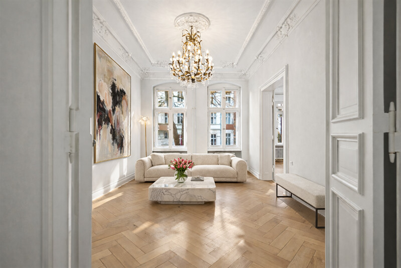 Es handelt sich um eine exklusive 3-Zi.-Stuckwohnung mit ca. 95 qm Wohnfläche, gelegen im 1. Obergeschoss eines sehr gepflegten Stuckaltbaus aus dem Jahre 1891-1894.